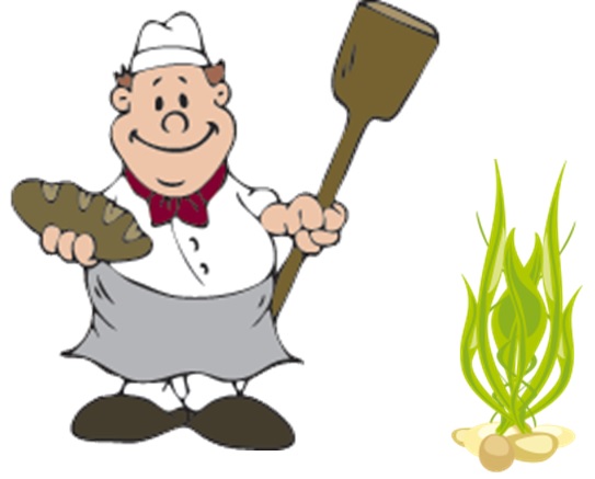 1.º - Colocar numa bacia 500g de farinha e algumas algas partidas em pequenos pedaços.